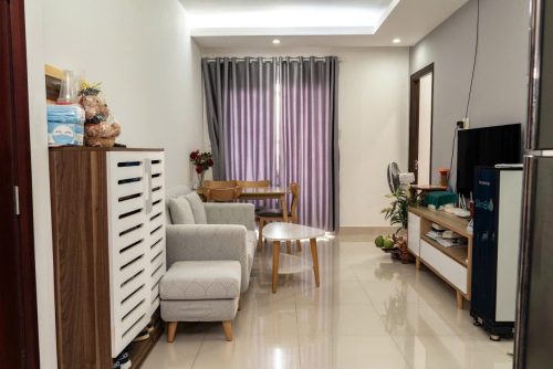 Căn hộ này có 3PN, 3WC với diện tích 122m², nội thất full cực chất gồm sofa, bàn ăn, giường, tủ lạnh. Hướng cửa chính Tây, ban công Nam, rất thoáng đãng. Giá chỉ 8 triệu VND/tháng, thời gian cho thuê linh hoạt từ 1 năm trở lên, thoải mái sống ảo trong không gian hiện đại.